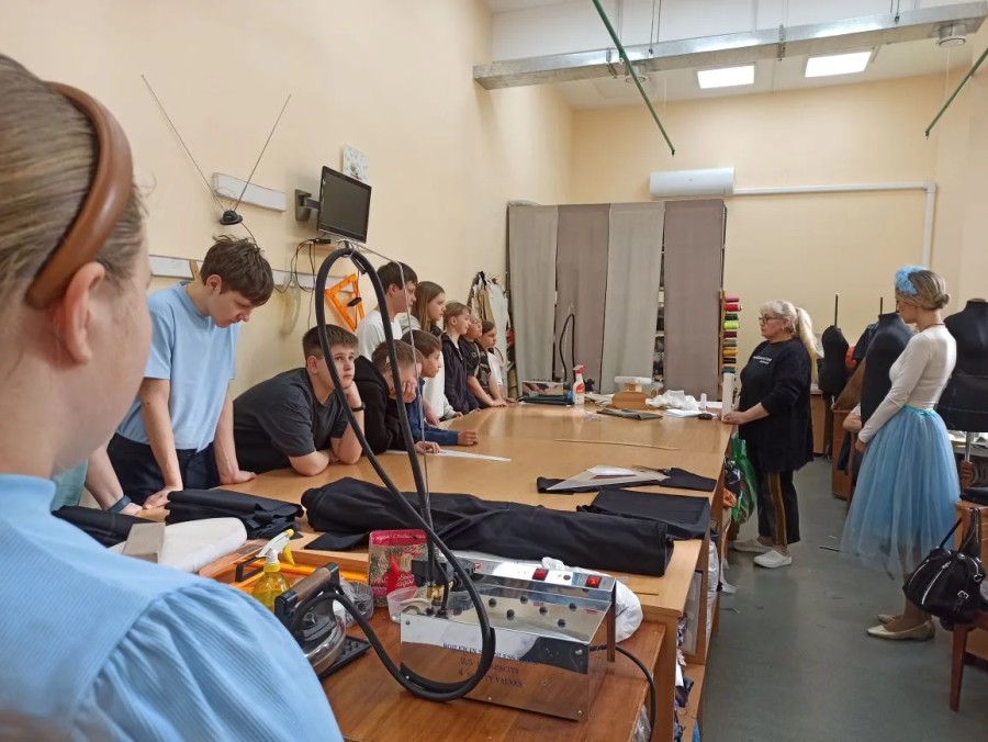 Учащиеся узнали, как работают актеры, художник по костюмам, художник по свету и звукорежиссер, без которых не обходится ни один спектакль. Особенно интересно было побывать в швейном и бутафорском цехах – именно здесь рождаются костюмы и создаются удивительные предметы для сцены.